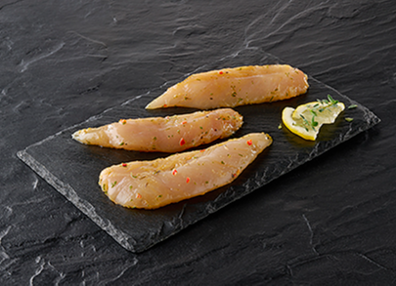 - Nos aiguillettes de poulet sont marinées thym citron, un délicieux mélange frais et agréable.