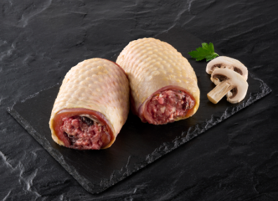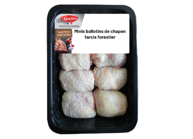 - Cuisse de chapon roulée façon ballotin, garnie d’une délicieuse farce forestière, ce produit sans porc et sans ficelle est idéal pour la restauration.