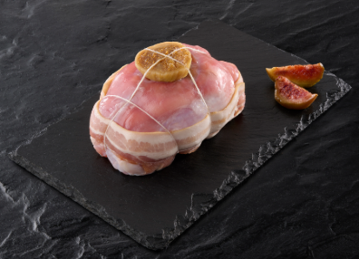 - Formé à partir de viande de lapin issue du râble et d'une farce aux figues et à la poitrine fumée.