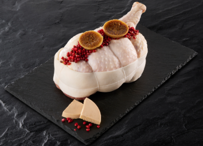 - Cette volaille festive par excellence est garni d'une savoureuse farce au foie gras.