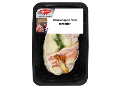 Le Gaulois Professionnel vous propose un généreux demi chapon garni d'une délicieuse farce aux champignons forestiers :