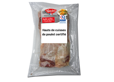 Le Gaulois Professionnel vous propose ses haut de cuisses de poulet certifié, un morceau tendre et savoureux. Facile à mettre en œuvre, vous pourrez le cuisiner de différentes façons : à la poêle, au four, à la cocotte ou à la casserole. Ce morceau peut être juste doré ou intégré à vos plats. Le mode d'élevage certifié garantit un poulet élevé pendant 56 jours, nourri avec 70% de céréales et sans OGM (<0,9%). Nos poulets sont garanties 100% français nés, élevés et préparés en France.