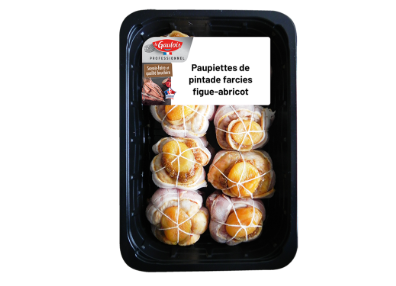 - Faite à la main et formée à partir d'une cuisse de pintade sans os et d'une farce aux figues et aux abricots.