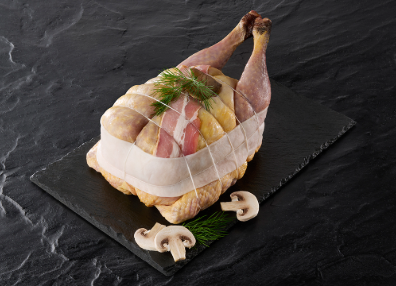 Le Gaulois Professionnel vous propose une généreuse pintade garnie d'une farce aux champignons forestier.