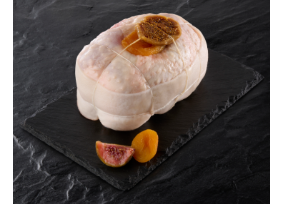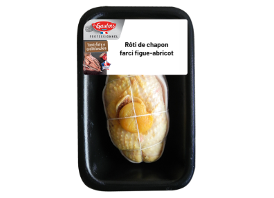 Le Gaulois Professionnel vous propose un savoureux rôti de chapon fait à la main à base de cuisse de chapon, farci aux figues et aux abricots :