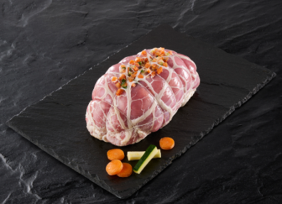Le Gaulois Professionnel vous propose un généreux rôti de lapin garni d'une farce aux petits légumes (carottes, courgettes et maïs).